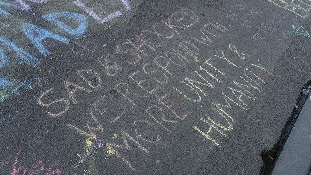 Under dagen har folk samlats i centrala Bryssel för att visa sitt stöd för de drabbade och för att visa att de protesterar mot terrorattacker. Många har lagt blommor och skrivit budskap på asfalten. Budskap som “Be för Belgien”, “Var inte rädda” och “Enade mot hatet”.