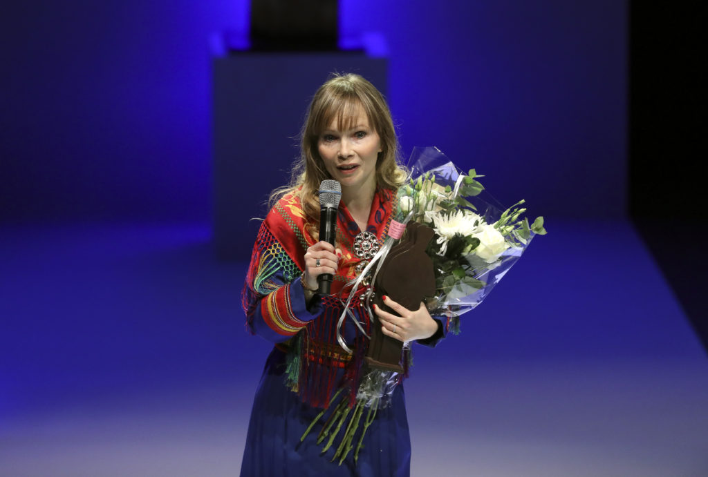 Ann-Helén Leastedius hade på sig samisk folkdräkt när hon tog emot priset på Augustgalan i måndags.