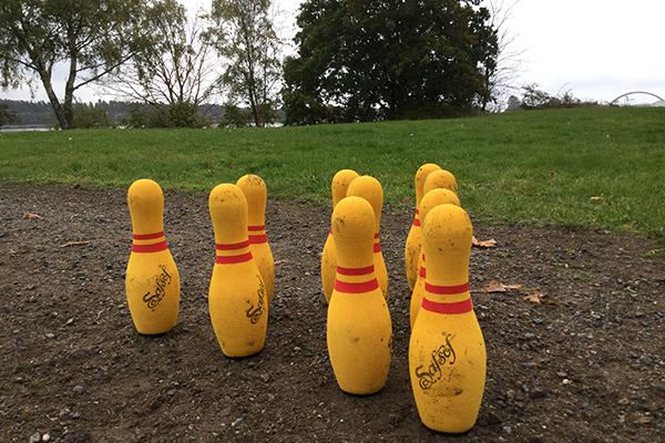 Vi var ute och bowlade och hade jätteroligt.