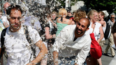 I lördags var det den internationella kuddkrigsdagen. Fjädrar fyllde l...